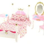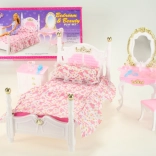 A Glorie Hálószoba tartalmaz egy műanyag ágyat kb. 16 cm × 34 cm × 18 cm méretben ágytakaróval és párnával, egy fésülködőasztalt kb. 13 cm × 8 cm × 22 cm méretben kiegészítőkkel babákhoz – fésű, karkötő, kefe és üvegcsék –, egy fotelt kb. 7 cm × 7 cm × 13 cm, valamint egy éjjeliszekrényt kb. 8,5 cm × 6 cm × 8 cm méretben. A baba nem része a csomagnak. Ajánlott életkor: 3+