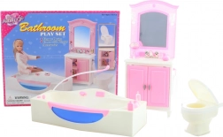 Tegye valósághűvé a gyerekjátékokat a Glorie fürdőszoba készlettel. A szett tartalmaz egy fésülködőasztalt mosdóval, egy kádat és egy WC-t gyerek méretben, valamint praktikus kiegészítőket, mint kozmetikumok, szappan és törölköző. Tartós műanyagból készült, 3 éves kortól ajánlott. A baba nem része a csomagnak.