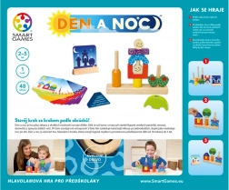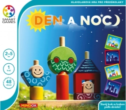 A Nappal és éjjel egy okosan megtervezett, egyszemélyes logikai játék, amely a legelső egyszerű kirakásoktól a bonyolultabb térbeli feladatokig kíséri a gyerekeket. A nappali kártyákon minden részlet látható, míg az éjszakai kártyák csak körvonalakat mutatnak – így a gyermek fejleszti képzelőerejét, figyelmét és finommotorikáját.