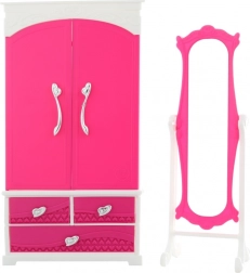 A GLORIE tükörrel ellátott ruhásszekrény remek kiegészítő a babavilágba. Nyitható ajtókat és fiókokat kínál a ruhácskák és kiegészítők tárolásához, valamint praktikus vállfákat a kedvenc szettek felakasztásához. A mellékelt tükörnek köszönhetően a gyerekek könnyedén kombinálhatnak és próbálhatnak új, stílusos összeállításokat.