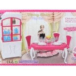 Ez a gyönyörű Glorie étkezőszett babáknak ideális a kis házigazdáknak, akik elegáns terítéket szeretnének biztosítani babáiknak. A szett tartalma: