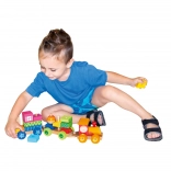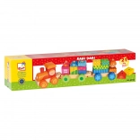 Ez a multifunkcionális fa vonat nemcsak húzós játék, hanem építőkészlet is, amely lehetővé teszi a gyermekek kreativitásának fejlesztését. A vonat három alvázat és 18 különböző kockát tartalmaz, amelyeket a fantázia szerint lehet összeilleszteni.