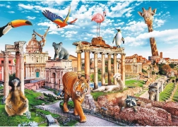 Az egyedi illusztráció a római látnivalókat egzotikus állatokkal ötvözi. A szórakoztató, részletgazdag kép leköti a figyelmet, és az egész család élvezheti az összerakást.
