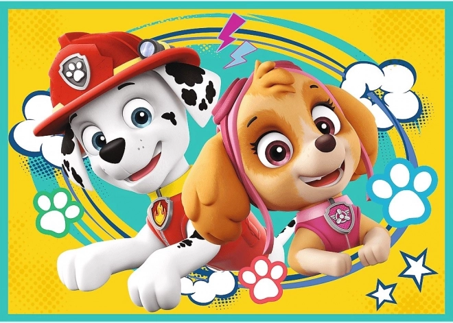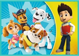 Szórakoztató 4 az 1-ben gyerek puzzle készlet Mancs őrjárat motívummal, 4 kirakóval 12/15/20/24 darabbal (összesen 71). A nagy, vastag elemek minőségi kartonból készülnek, 3 éves kortól ideálisak, és fejlesztik a finommotorikát, a figyelmet és a memóriát.