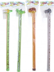 A vidám műanyag pálca dinoszaurusz fejjel örömet szerez az őslények kis rajongóinak. Elfordításra valósághű hangot ad ki, kb. 43 cm hosszú, és 3 éves kortól ajánlott.