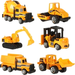 - Teljes, 6 darabos készlet – betonkeverő, targonca, kotrógép, buldózer, billenőplatós, úthenger