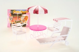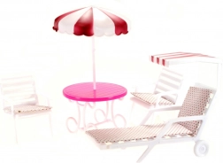 Állítsd össze a tökéletes nyári sarkot babáidnak az elegáns Glorie készlettel. A valósághű kiegészítőknek köszönhetően – napozóágy, székek, asztalka és napernyő – remek jelenetet alkothatsz pihenéshez vagy egy „limonádés” beszélgetéshez. A minőségi műanyag kivitel könnyű tisztítást és hosszú élettartamot biztosít.