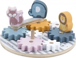 Támogassa a szórakozást és fejlődést a fa fogaskerekes kockáinkkal, ahol a mechanika játéká válik. A készlet tartalmaz 7 színes fogaskerekes elemet, 3 szórakoztató állatfigurát és egy alaplapot, amelyre helyezheti a fogaskerekeket úgy, hogy egy elmozdítása mozgásba hozza a többieket.