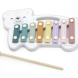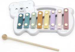 A jegesmedve alakú fa xilofon játékos esztétikát ötvöz egy teljes értékű hangszerrel. A pasztellszínű fém lamellák kellemes hangokat adnak a fa ütővel való megütéskor, így a gyerekeket természetesen ösztönzik a hangokkal és ritmussal való kísérletezésre.