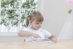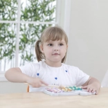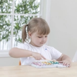 Nyolc pasztellszínű billentyű motiválja a gyerekeket a hangok, a ritmus és az egyszerű dallamok felfedezésére. Tökéletes a hallási észlelés és a kreativitás fejlesztéséhez.