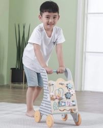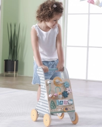 A Viga Toys fa oktatási járássegítő kiváló eszköz a motoros képességek és a kognitív készségek fejlesztésére 18 hónapos kortól. A többfunkciós kialakítás egyesíti a stabil járássegítőt és az interaktív oktatási panelt, amely segít a gyermekeknek megismerni a formákat és színeket. Fordított elemek, mint a fogaskerekek, az állatokkal ellátott pályák és az oldalpanelek fenntartják a gyermek figyelmét és szórakozását.