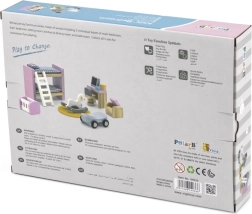 A készlet tovább bővíthető a POLARB sorozat további szobáival (hálószoba, nappali, konyha, fürdőszoba), így a teljes babaház az elképzelések szerint alakítható. A minőségi anyagoknak és a nem toxikus festékeknek köszönhetően a játék biztonságos, és közben fejleszti a finommotorikát, a kommunikációt és a logikus gondolkodást.