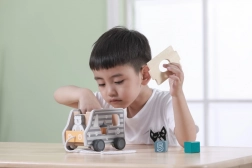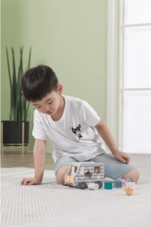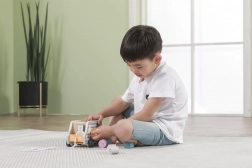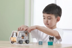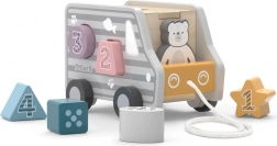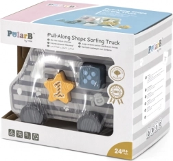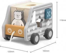 Fából készült húzható és formabedobó játék teherautó alakban. Méretek kb. 18 × 12 × 6,5 cm. Csomagolás mérete kb. 19 × 16,5 × 13,5 cm. Ajánlott életkor: 18 hónap+