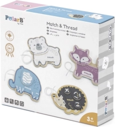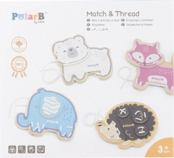 A PolarB Match & Thread készlet alkotás- és tanulásélményt nyújt a gyerekeknek. A színes fa állatkártyák sima élekkel és elég nagy lyukakkal rendelkeznek a könnyű fűzéshez. A gyerekek gyakorolják a fogást, a pontosságot és a logikus gondolkodást, miközben összeillesztik az egyes részeket és gyakorolják a fűzést.