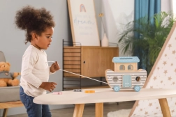 A 14 darabnak – bárkának, házikónak és állatszettnek – köszönhetően a gyerekek megtanulják megkülönböztetni az alakokat, színeket és párokat, miközben szem–kéz koordinációjukat és logikus gondolkodásukat is gyakorolják. A játék 18 hónapos kortól ajánlott, lekerekített élei pedig biztonságosak a kis felfedezők számára.