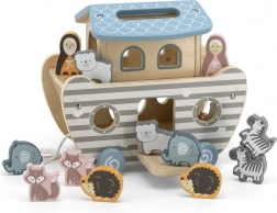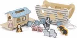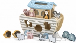 Ez a minőségi fa Noé bárkája több játékelemet ötvöz egy okos játékban: a gyerekek a megfelelő nyílásokba illesztik az állatokat, a kis hajót zsinóron húzzák, és saját történeteket találnak ki. A stabil kivitel és a kellemes színek segítik a koncentrációt és fejlesztik a fantáziát.