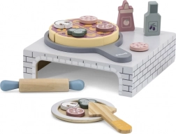 Varázsolj pizzériát az otthonodba ezzel a minőségi fa szakácsjáték-készlettel. A szett tartalmaz egy pizzasütő kemencét, szeletelhető pizzát levehető feltétekkel, nyújtófát, tányért és további kiegészítőket a valósághű játékhoz. Támogatja a finommotorikát, a kreativitást és a szerepjátékot már 18 hónapos kortól.