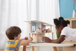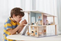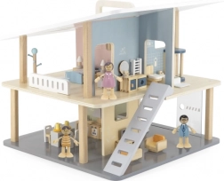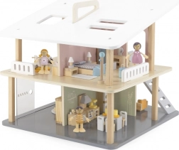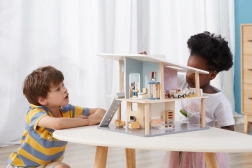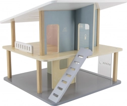 Ez a modern fa babaház teret ad a szabad játéknak és a fantázia kibontakoztatásának. A nyitott konstrukció megkönnyíti a hozzáférést minden helyiséghez, a két szint és a terasz pedig saját történetek alkotására hív. Hordozható kivitelének köszönhetően könnyen áthelyezhető és elrakható.