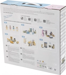 A belső tér tematikus bútorszettekkel egészíthető ki (konyha, nappali, hálószoba, gyerekszoba és fürdőszoba), amelyek bővítik a játék lehetőségeit és segítik a háztartás működésének megismerését.