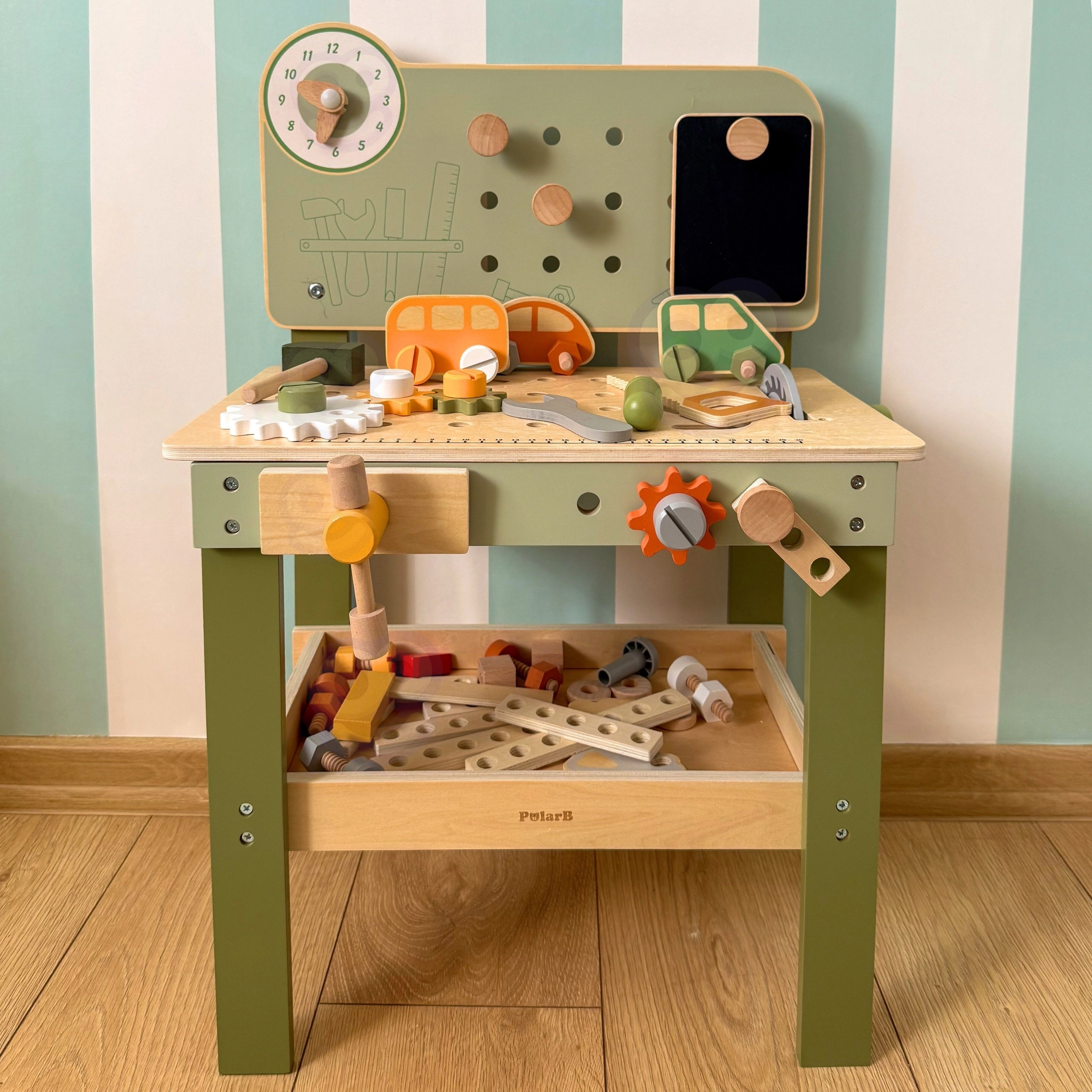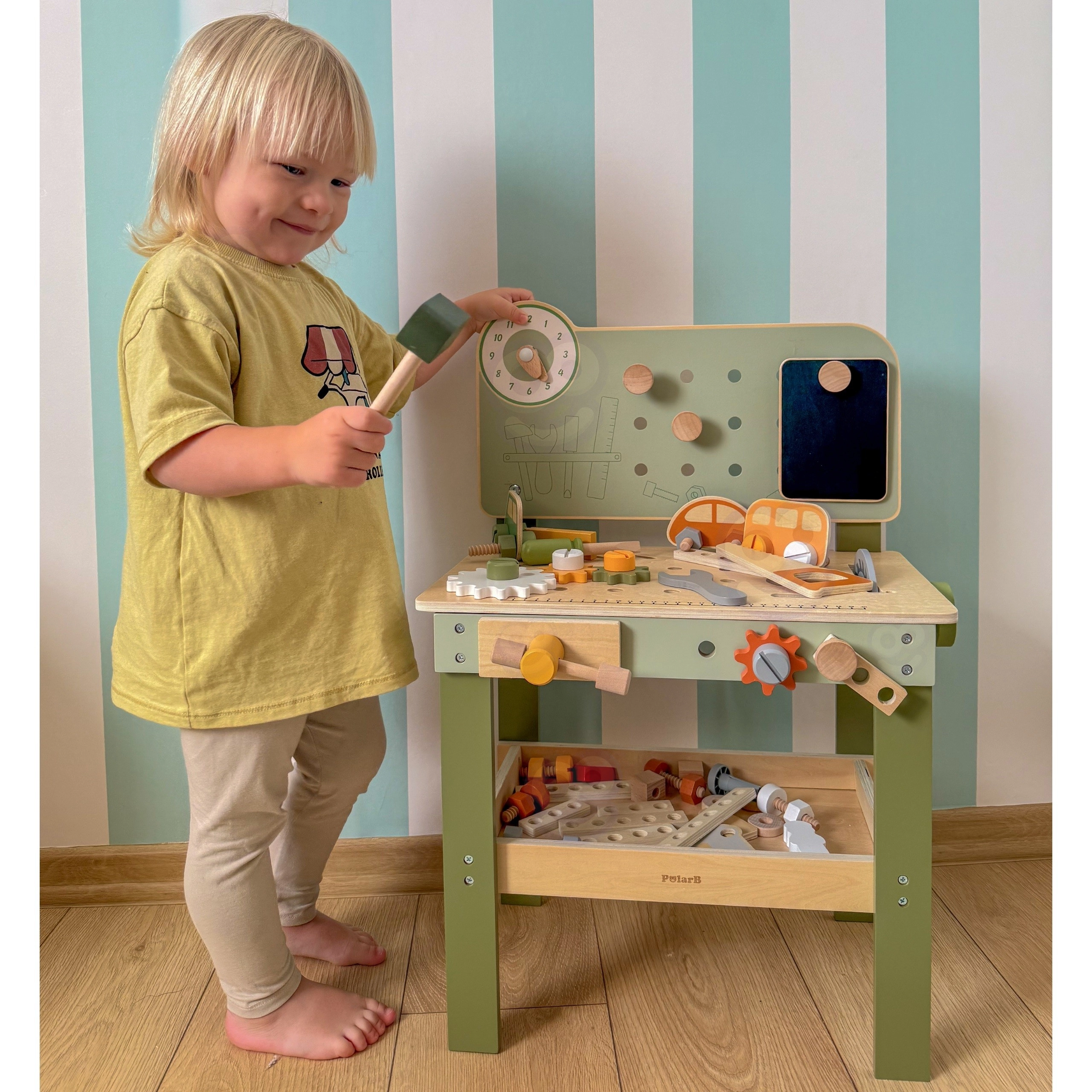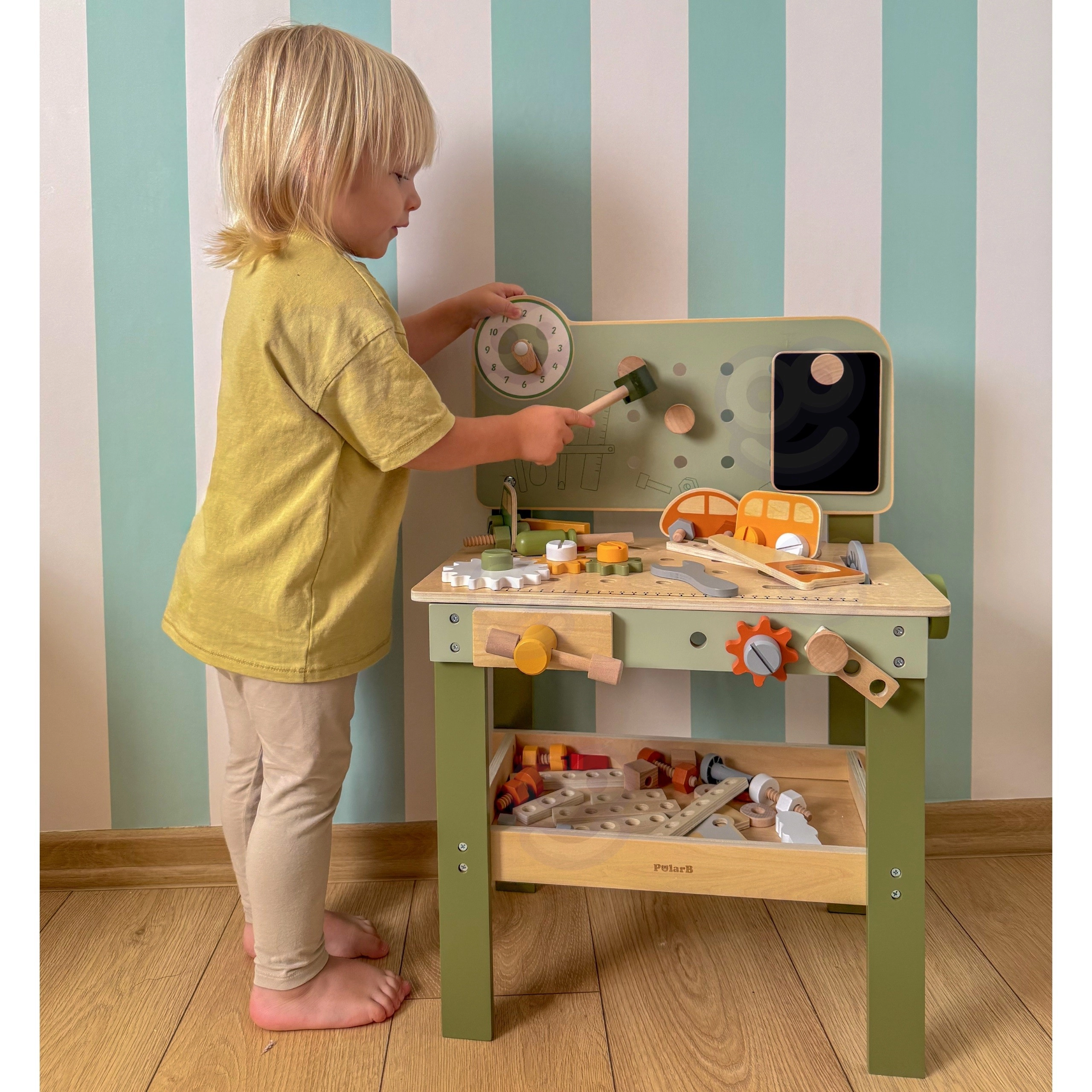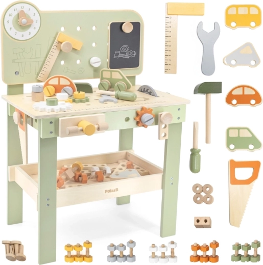 A nagy fa munkapad Viga PolarB a játékot kreatív tanulássá változtatja. A gyerekek kalapálhatnak tipliket, meghúzhatnak csavarokat és összeállíthatnak elemeket, miközben fejlődik a finommotorikájuk és a képzeletük. A munkapad oktató óraszámlappal, szerszámtároló rekeszekkel rendelkezik, és minőségi fából készült, biztonságos, nem mérgező festékekkel – a mindennapi szórakozásért és fejlődésért.