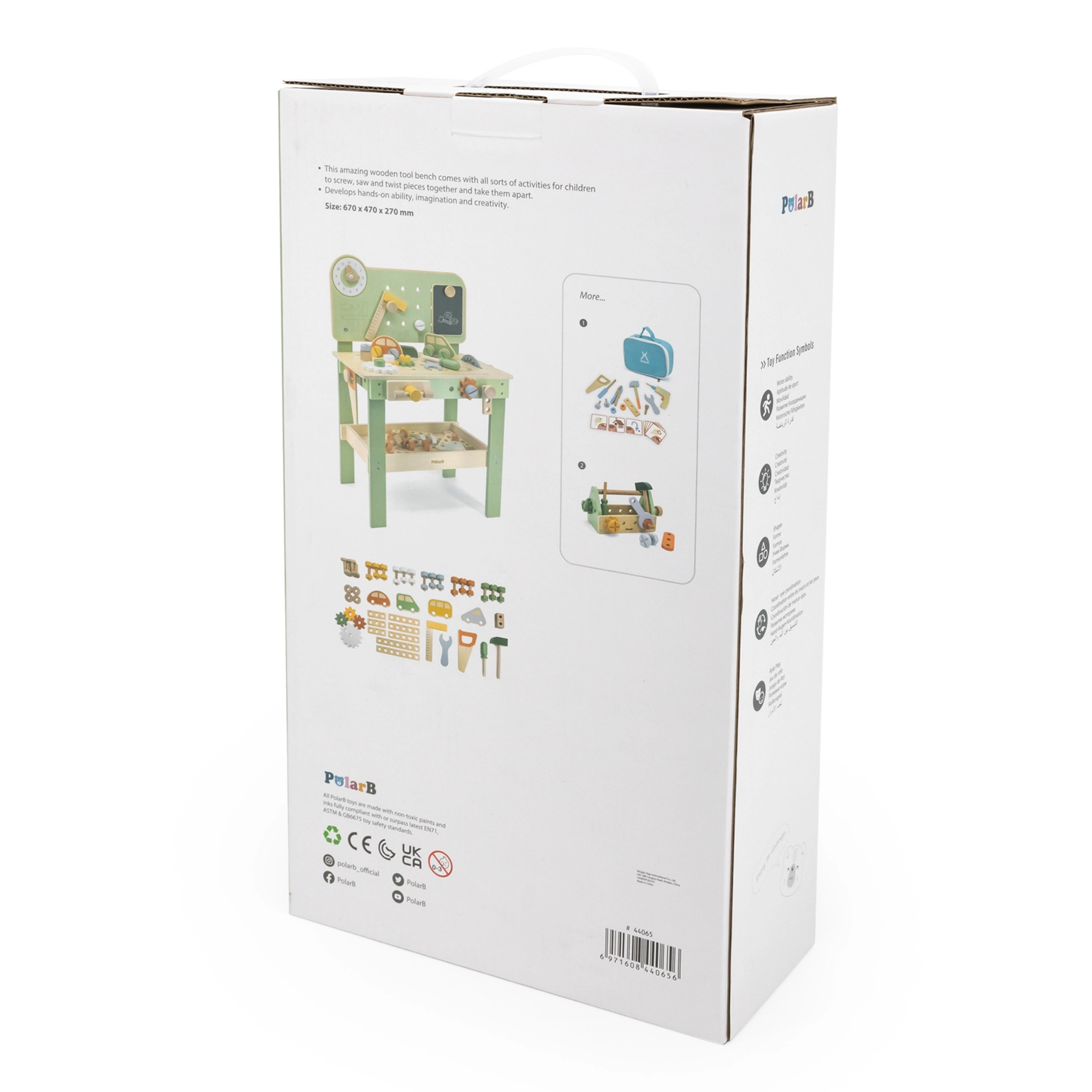 Fedezze fel a masszív és stílusos Viga PolarB munkapadot, amelyet 3 éves kortól kis ezermestereknek terveztek. A fa szerkezetnek, a simán forgó fogaskerekeknek és a gazdag tartozékoknak köszönhetően a gyerekek gyakorolják a szem–kéz koordinációt, és játékosan tanulnak feladatokat megoldani. A biztonságos anyagok és az átgondolt részletek hosszú élettartamot és kényelmes alkatrész-tárolást garantálnak.