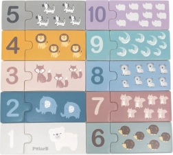 Összesen 31 fa elemet tartalmaz állat- és számillusztrációkkal, amelyeket a gyerekek párosítanak és helyes sorrendbe rendeznek. A minőségi fa kivitel, kellemes színek és tartósság alkalmasak a mindennapos játékra és tanulásra.