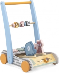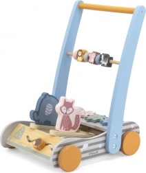 A bájos, fából készült járássegítő az első lépésekhez stabil támaszt, előre- és hátrafelé mozgást, valamint rengeteg érzékszervi élményt kínál. A hintázó állatkák (róka és elefánt), amelyek tolás közben hangot adnak, támogatják a finom- és nagymotorikát, a egyensúlyt, valamint a színek és állatok felismerését. Ideális 18 hónapos kortól.