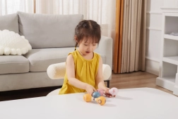 Ergonomikus formája jól illeszkedik a kis kezekbe, segíti a kéz–szem koordinációt és az első rázási, gurítási próbálkozásokat.