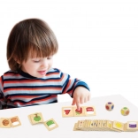 Ezzel a játékkal a gyerekek játékosan tanulják meg a színek és formák felismerését és megnevezését, ami örömteli és tanulságos pillanatokat nyújt.
