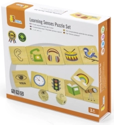 A VIGA oktató játék fa kirakó ideális módot kínál a gyerekek számára gondolkodásuk és koordinációjuk fejlesztésére. A feladat a tárgyak hozzárendelése a kiválasztott érzékekhez, ami változatos mindennapi objektumokat foglal magában.
