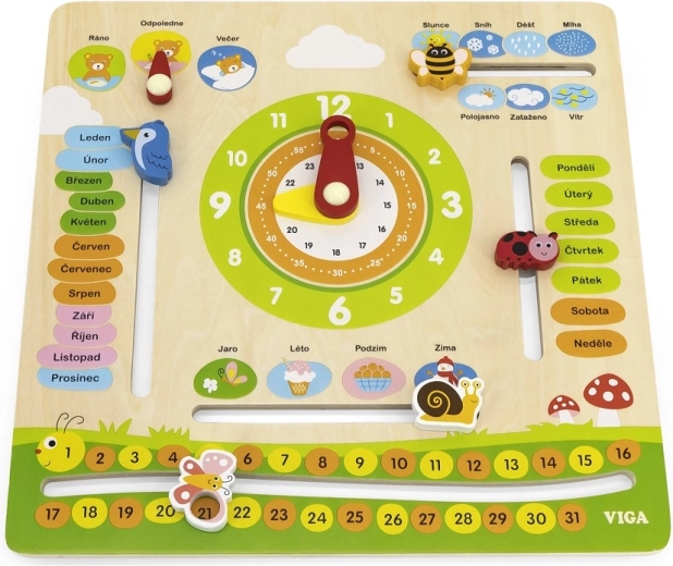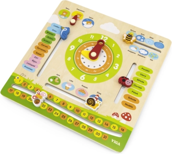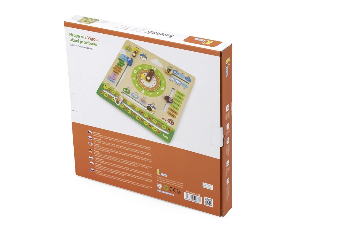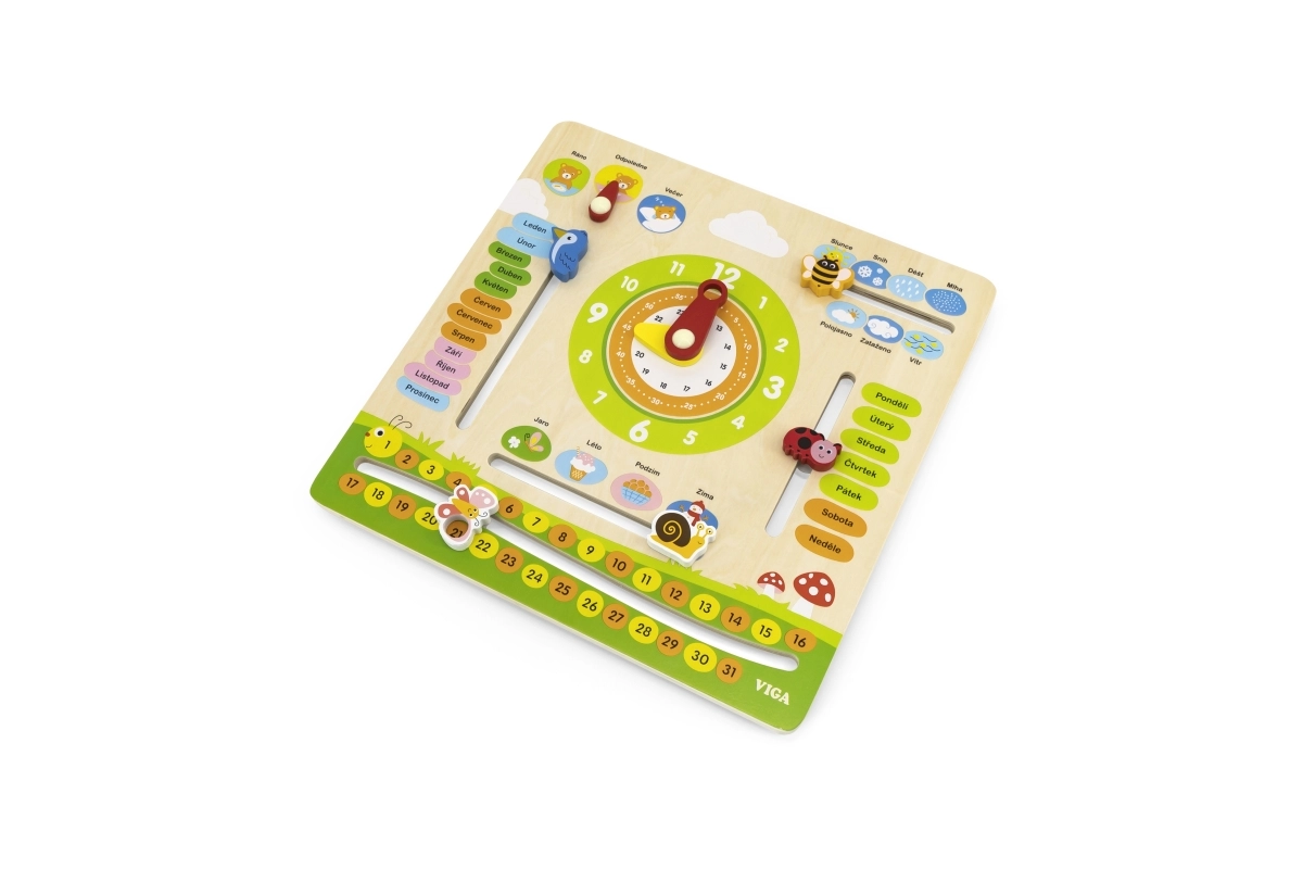 VIGA oktatási naptár ideális eszköz a gyerekek számára az idő, az időjárás változásai és az évszakok tanulásához. A színes és mozgatható elemeknek köszönhetően segít a mindennapi időfogalom megértésében.