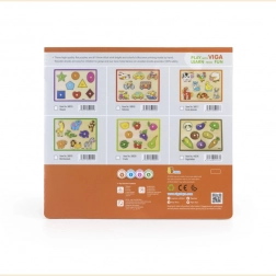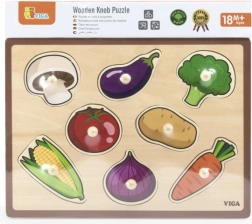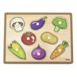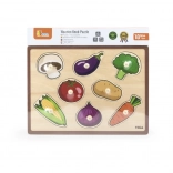 A fa zöldséges kirakó remek választás első fejlesztő játéknak. A gyerekek játékos formában tanulják meg felismerni az alakokat, színeket és a különféle zöldségeket. A masszív fa alaplap kivágásokkal és a simára csiszolt elemek a kisgyermekek kezéhez igazodnak.