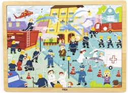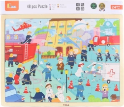 Fa puzzle tűzoltók 48 darabbal keretben