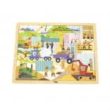 A 40 × 30 cm-es nagy kép tele van részletekkel – építőgépek, munkások és közlekedési táblák kötik le a figyelmet és motiválnak az újbóli kirakásra. A puzzle 24 hónapos kortól ajánlott, segít fejleszteni a türelmet, a koncentrációt és a térbeli észlelést.