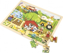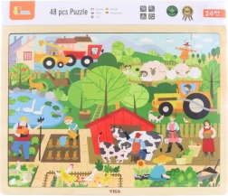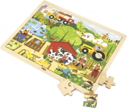 Fa puzzle tanyasi motívummal, amely elszórakoztatja a kis építmények szerelmeseit. Összesen 48 darabot tartalmaz, és úgy tervezték, hogy lenyűgözze a gyerekeket, miközben fejleszti motorikus képességeiket.