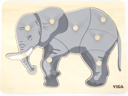 Fa Montessori illesztő elefánt szórakozást és egyúttal a finommotorika és a logikus gondolkodás fejlődését kínálja a gyerekek számára. Minden darabhoz tartozó fogó miatt még a legkisebbek számára is könnyű a kezelése. Ideális 18 hónapos kortól.