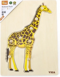 Aranyos fa formaillesztő zsiráf motívummal a VIGA márkától, 18 hónapos kortól. A nagy, fogantyús elemek fejlesztik a finommotorikát, a kéz–szem koordinációt és a formák és színek észlelését. A 30 × 22,5 cm méretű masszív fa tábla tartós és könnyen hordozható.