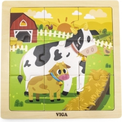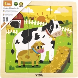 Fa puzzle 9 darabbal, kis teheneket ábrázoló képpel. A fa tábla mérete kb. 22 × 22 × 1 cm. A csomagolás mérete kb. 22 × 22 × 1 cm. Ajánlott életkor: 18 hónap+