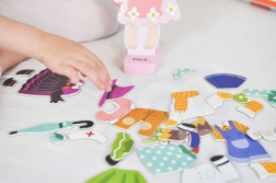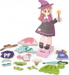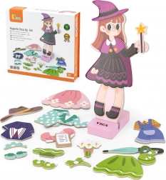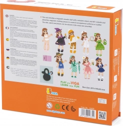 Mágneses öltöztetős kirakó a VIGA márkától, remek didaktikai játék gyerekeknek. A fa lányfigurat a gyerekek tetszés szerint öltöztethetik, és 44 ruhadarabot kombinálhatnak, miközben fejlődik a finommotorika, a kreativitás és a kéz–szem koordináció.