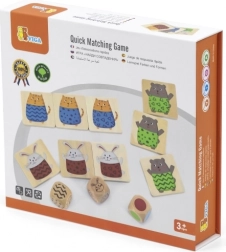 A masszív fa zsetonoknak és a precíz kivitelnek köszönhetően a játék tartós és kellemes tapintású. A színes állatmotívumok segítik fejleszteni a vizuális észlelést, a koncentrációt és a finommotorikát.