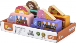 A felső táblák pizza, kávé, fagylalt és fánk motívumokkal könnyedén felcserélhetők. A gyerekek így saját food truckot állíthatnak össze, és fejleszthetik a szerepjátékot.
