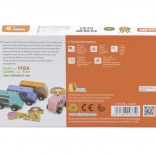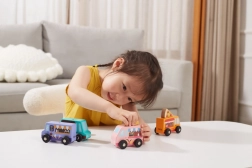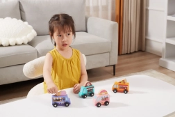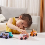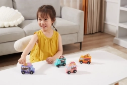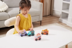 A sima, masszív fa és a lekerekített élek biztonságot nyújtanak. Az autók remekül illeszkednek a kézbe, ideálisak az első gurításokhoz és a finommotorika fejlesztéséhez.