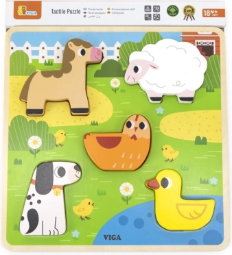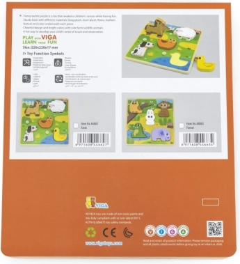 A VIGA minőségi fát és sima felületeket használ a biztonságos játékért. Az erős darabok jól kézbe illenek, így tökéletesek a kisgyermekek számára. A puzzle fejleszti a önállóságot, a koncentrációt és a kreatív játékot.