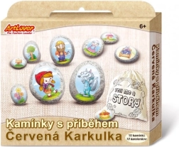 Fedezd fel a mesemondás varázsát ezzel a kreatív szettel, amely a hétköznapi kavicsokat a Piroska és a farkas történetének szereplőivé és díszleteivé változtatja. Ideális közös családi pillanatokhoz és önálló alkotáshoz is.