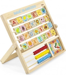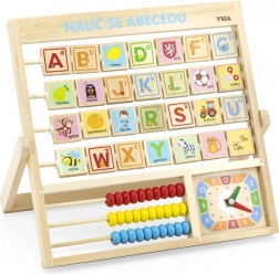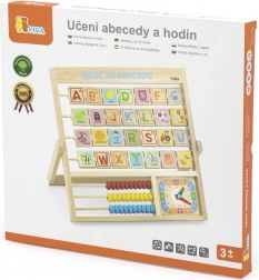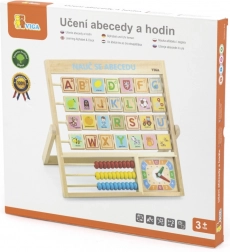 Fa ábécé és óra cseh nyelven. A gyerekek megtanulhatják a betűket, a számokat, és általános képet kaphatnak az óráról. Minden betű hátoldalán egy szó található a könnyebb megjegyzés érdekében. Méret kb. 32,5 × 32 × 2,3 cm. Csomagolás mérete kb. 34 × 32,5 × 3 cm. Korosztály: 3+