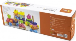 A masszív kivitelezés, a sima élek és a biztonságos festékek hosszú élettartamot és biztonságos játékot garantálnak. A készlet ideális első fa építőkészletnek a kis vonatrajongók számára.