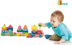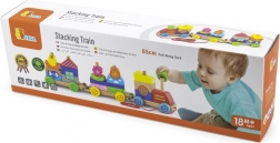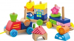 Ez a minőségi, húzós fa mozdony három vagonnal számos lehetőséget kínál a színes formák rakosgatására és átrendezésére. A gyerekek gyakorolhatják a szem–kéz koordinációt, megismerhetik a színeket és formákat, miközben élvezik a vonat húzogatását a lakásban.
