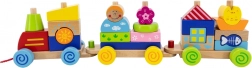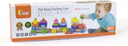 Játékos, 2 az 1-ben fa mozdony, amely ötvözi a húzós játékot és a építőkészletet színes kockákkal. Támogatja a finommotorikát, a logikát és a kreatív játékot 18 hónapos kortól. Az erős zsinórnak köszönhetően a gyerekek könnyen magukkal vihetik bárhová.
