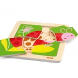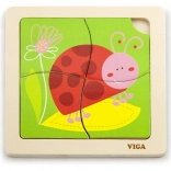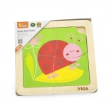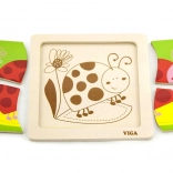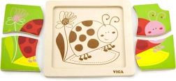 Ez az egyszerű, katicás fa kirakó remek első puzzle a kisgyermekeknek. A masszív, sima darabok jól kézbe illenek, és könnyen behelyezhetők a keretbe. Az élénk színű motívum játékra ösztönöz és segíti a koncentrációt.