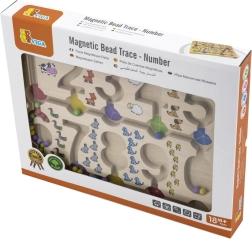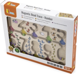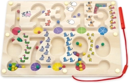 Fedezze fel a tanulás és szórakozás világát a Mágneses labirintus - Számok segítségével. Ez a fából készült tábla számjegyekkel és színes gyöngyökkel remek lehetőséget biztosít a gyerekek számára, hogy fejlesszék matematikai készségeiket és finommotorikájukat.